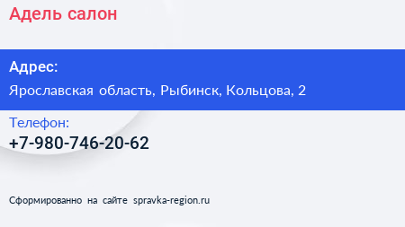 Адель, салон по адресу Ярославская область, Рыбинск, Кольцова, 2 в дальнейшем Организация, размещена в следующих категориях: