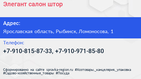 Элегант, салон штор по адресу Ярославская область, Рыбинск, Ломоносова, 1 в дальнейшем Организация, размещена в следующих категориях: