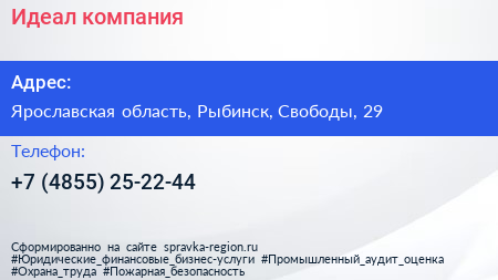 Идеал, компания по адресу Ярославская область, Рыбинск, Свободы, 29 в дальнейшем Организация, размещена в следующих категориях: