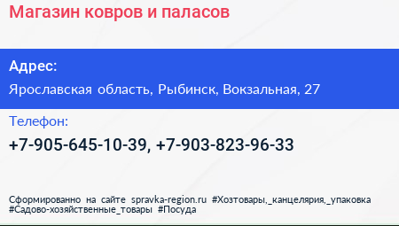 Магазин ковров и паласов по адресу Ярославская область, Рыбинск, Вокзальная, 27 в дальнейшем Организация, размещена в следующих категориях: