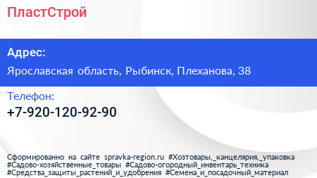 ПластСтрой по адресу Ярославская область, Рыбинск, Плеханова, 38 в дальнейшем Организация, размещена в следующих категориях: