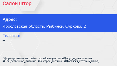 Салон штор по адресу Ярославская область, Рыбинск, Суркова, 2 в дальнейшем Организация, размещена в следующих категориях: