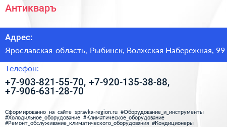 Антикваръ по адресу Ярославская область, Рыбинск, Волжская Набережная, 99 в дальнейшем Организация, размещена в следующих категориях:
