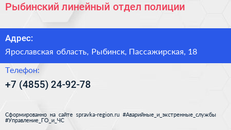 Рыбинский линейный отдел полиции по адресу Ярославская область, Рыбинск, Пассажирская, 18 в дальнейшем Организация, размещена в следующих категориях: