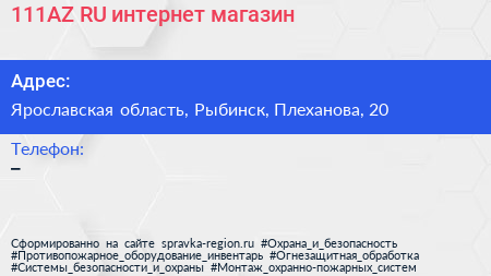 111AZ.RU, интернет-магазин по адресу Ярославская область, Рыбинск, Плеханова, 20 в дальнейшем Организация, размещена в следующих категориях: