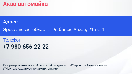 Аква, автомойка по адресу Ярославская область, Рыбинск, 9 мая, 21а ст1 в дальнейшем Организация, размещена в следующих категориях: