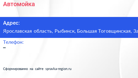 Автомойка по адресу Ярославская область, Рыбинск, Большая Тоговщинская, 3а в дальнейшем Организация, размещена в следующих категориях: