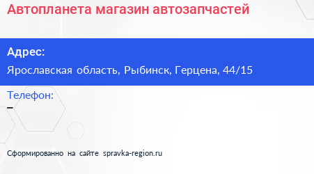 Автопланета, магазин автозапчастей по адресу Ярославская область, Рыбинск, Герцена, 44/15 в дальнейшем Организация, размещена в следующих категориях: