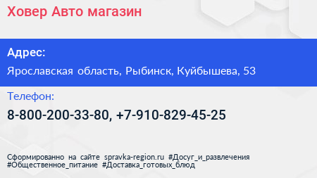 Ховер Авто, магазин по адресу Ярославская область, Рыбинск, Куйбышева, 53 в дальнейшем Организация, размещена в следующих категориях:
