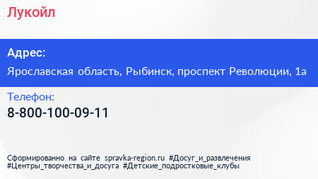 Лукойл по адресу Ярославская область, Рыбинск, проспект Революции, 1а в дальнейшем Организация, размещена в следующих категориях:
