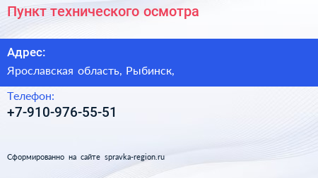 Пункт технического осмотра по адресу Ярославская область, Рыбинск, в дальнейшем Организация, размещена в следующих категориях: