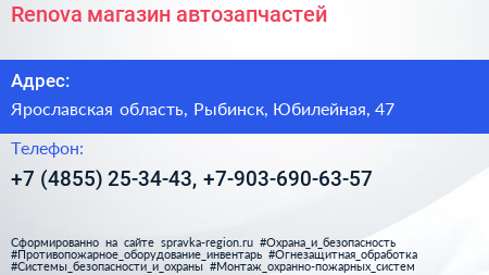 Renova, магазин автозапчастей по адресу Ярославская область, Рыбинск, Юбилейная, 47 в дальнейшем Организация, размещена в следующих категориях: