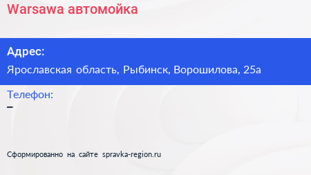 Warsawa, автомойка по адресу Ярославская область, Рыбинск, Ворошилова, 25а в дальнейшем Организация, размещена в следующих категориях: