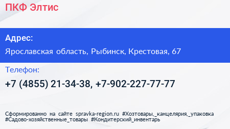 ПКФ Элтис по адресу Ярославская область, Рыбинск, Крестовая, 67 в дальнейшем Организация, размещена в следующих категориях: