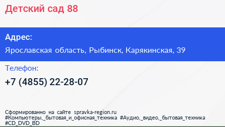 Детский сад №88 по адресу Ярославская область, Рыбинск, Карякинская, 39 в дальнейшем Организация, размещена в следующих категориях: