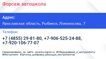 Форсаж, автошкола по адресу Ярославская область, Рыбинск, Ломоносова, 7 в дальнейшем Организация, размещена в следующих категориях: