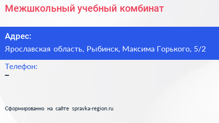 Межшкольный учебный комбинат по адресу Ярославская область, Рыбинск, Максима Горького, 5/2 в дальнейшем Организация, размещена в следующих категориях: