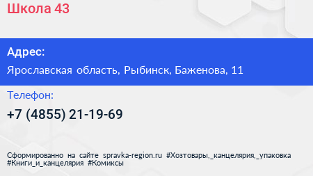 Школа №43 по адресу Ярославская область, Рыбинск, Баженова, 11 в дальнейшем Организация, размещена в следующих категориях: