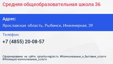 Средняя общеобразовательная школа №36 по адресу Ярославская область, Рыбинск, Инженерная, 39 в дальнейшем Организация, размещена в следующих категориях: