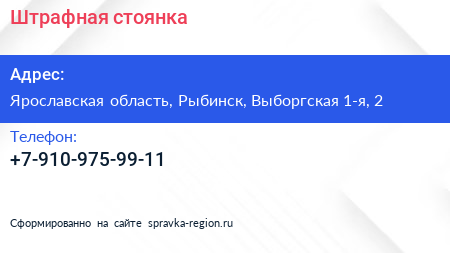Штрафная стоянка по адресу Ярославская область, Рыбинск, Выборгская 1-я, 2 в дальнейшем Организация, размещена в следующих категориях: