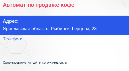 Автомат по продаже кофе по адресу Ярославская область, Рыбинск, Герцена, 23 в дальнейшем Организация, размещена в следующих категориях: