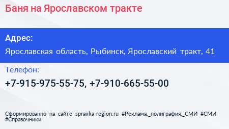 Баня на Ярославском тракте по адресу Ярославская область, Рыбинск, Ярославский тракт, 41 в дальнейшем Организация, размещена в следующих категориях: