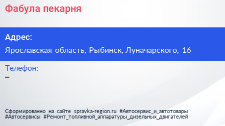 Фабула, пекарня по адресу Ярославская область, Рыбинск, Луначарского, 16 в дальнейшем Организация, размещена в следующих категориях: