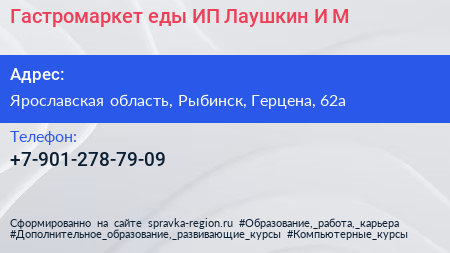 Гастромаркет еды, ИП Лаушкин И.М. по адресу Ярославская область, Рыбинск, Герцена, 62а в дальнейшем Организация, размещена в следующих категориях: