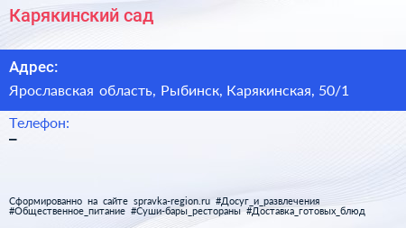Карякинский сад по адресу Ярославская область, Рыбинск, Карякинская, 50/1 в дальнейшем Организация, размещена в следующих категориях: