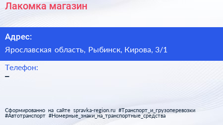 Лакомка, магазин по адресу Ярославская область, Рыбинск, Кирова, 3/1 в дальнейшем Организация, размещена в следующих категориях: