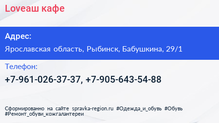 Loveаш, кафе по адресу Ярославская область, Рыбинск, Бабушкина, 29/1 в дальнейшем Организация, размещена в следующих категориях: