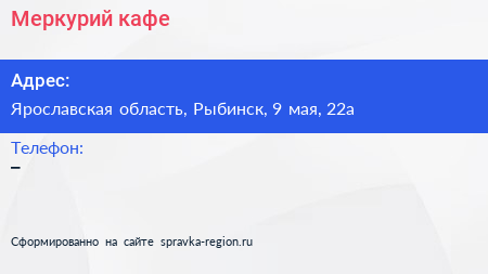 Меркурий, кафе по адресу Ярославская область, Рыбинск, 9 мая, 22а в дальнейшем Организация, размещена в следующих категориях: