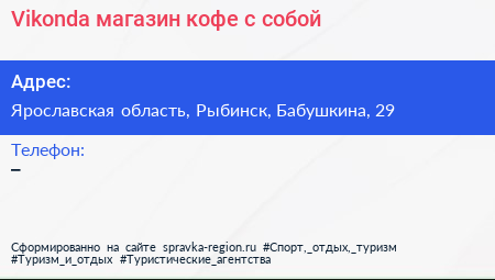 Vikonda, магазин кофе с собой по адресу Ярославская область, Рыбинск, Бабушкина, 29 в дальнейшем Организация, размещена в следующих категориях: