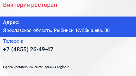 Виктория, ресторан по адресу Ярославская область, Рыбинск, Куйбышева, 38 в дальнейшем Организация, размещена в следующих категориях: