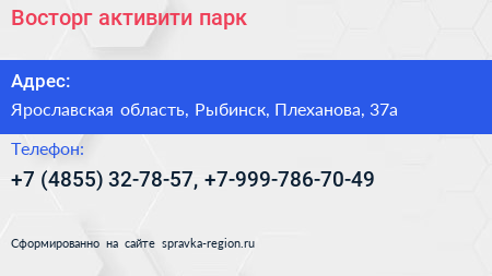 Восторг, активити-парк по адресу Ярославская область, Рыбинск, Плеханова, 37а в дальнейшем Организация, размещена в следующих категориях: