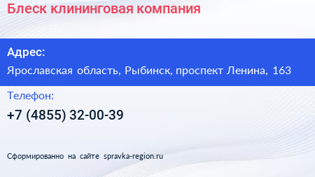 Блеск, клининговая компания по адресу Ярославская область, Рыбинск, проспект Ленина, 163 в дальнейшем Организация, размещена в следующих категориях: