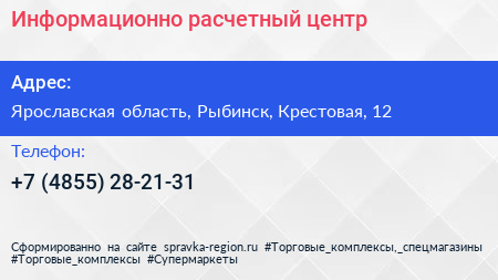 Информационно-расчетный центр по адресу Ярославская область, Рыбинск, Крестовая, 12 в дальнейшем Организация, размещена в следующих категориях:
