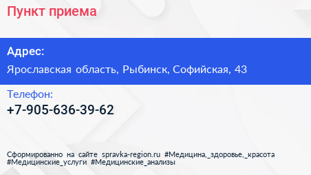 Пункт приема по адресу Ярославская область, Рыбинск, Софийская, 43 в дальнейшем Организация, размещена в следующих категориях: