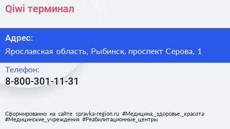 Qiwi, терминал по адресу Ярославская область, Рыбинск, проспект Серова, 1 в дальнейшем Организация, размещена в следующих категориях: