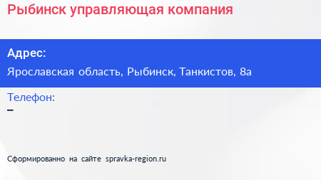 Рыбинск, управляющая компания по адресу Ярославская область, Рыбинск, Танкистов, 8а в дальнейшем Организация, размещена в следующих категориях: