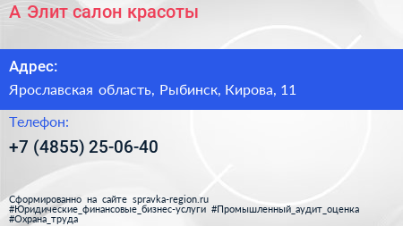 А-Элит, салон красоты по адресу Ярославская область, Рыбинск, Кирова, 11 в дальнейшем Организация, размещена в следующих категориях:
