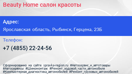 Beauty Home, салон красоты по адресу Ярославская область, Рыбинск, Герцена, 23Б в дальнейшем Организация, размещена в следующих категориях: