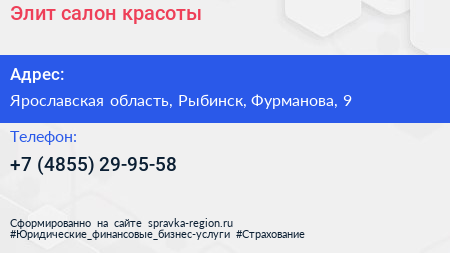 Элит, салон красоты по адресу Ярославская область, Рыбинск, Фурманова, 9 в дальнейшем Организация, размещена в следующих категориях: