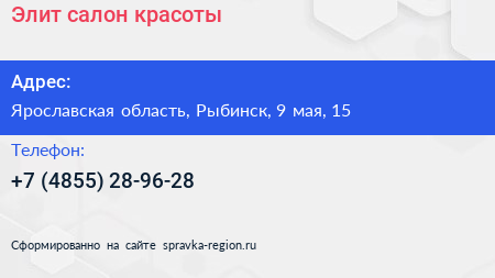 Элит, салон красоты по адресу Ярославская область, Рыбинск, 9 мая, 15 в дальнейшем Организация, размещена в следующих категориях: