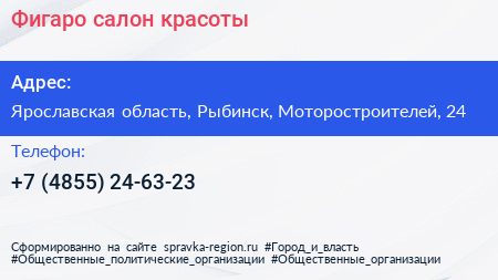 Фигаро, салон красоты по адресу Ярославская область, Рыбинск, Моторостроителей, 24 в дальнейшем Организация, размещена в следующих категориях: