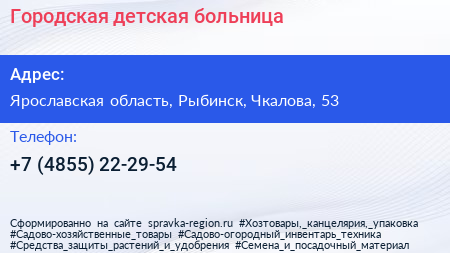 Городская детская больница по адресу Ярославская область, Рыбинск, Чкалова, 53 в дальнейшем Организация, размещена в следующих категориях: