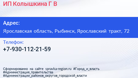ИП Колышкина Г.В. по адресу Ярославская область, Рыбинск, Ярославский тракт, 72 в дальнейшем Организация, размещена в следующих категориях: