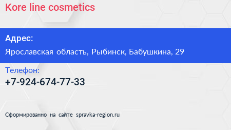 Kore line cosmetics по адресу Ярославская область, Рыбинск, Бабушкина, 29 в дальнейшем Организация, размещена в следующих категориях: