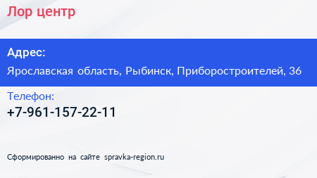 Лор-центр по адресу Ярославская область, Рыбинск, Приборостроителей, 36 в дальнейшем Организация, размещена в следующих категориях: