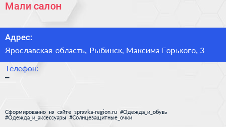Мали, салон по адресу Ярославская область, Рыбинск, Максима Горького, 3 в дальнейшем Организация, размещена в следующих категориях: